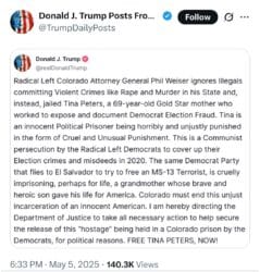 Fantastic! Thank you President Trump for taking the important action to free Tina Peters that the CO State GOP seems disturbingly disinterested in taking.